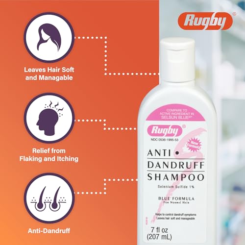 ANTI-DANDRUFF SHAMPOO: Rugby's Selenium Sulfide Anti-Dandruff Shampoo helps to control dandruff symptoms and leave hair soft and manageable. This blue formula is made for normal hair.