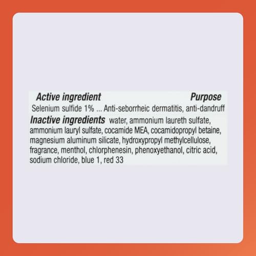 | ACTIVE INGREDIENT: This shampoo contains selenium sulfide 1% for the relief of flaking and itching associated with dandruff and seborrheic dermatitis and to help prevent their recurrence. | |