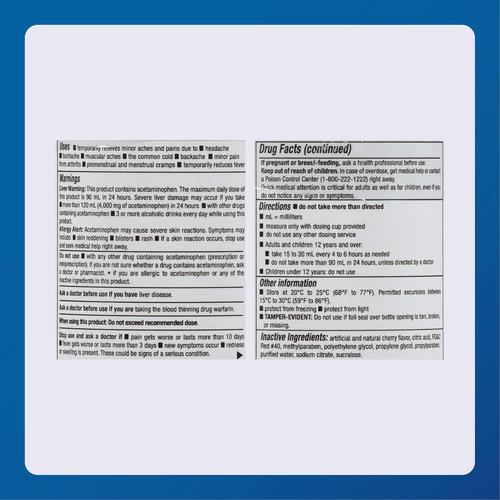 Major Acetaminophen (Tylenol) Liquid Extra Strength Red 500 mg. 8 oz (237 ml)(3 Bottles)