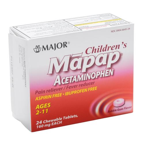 Major Children's Mapap Bubblegum Chewable Tabs 160 mg 24 Tabs (3 Boxes)