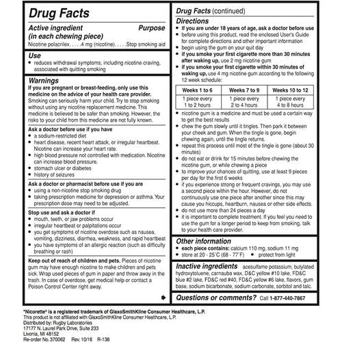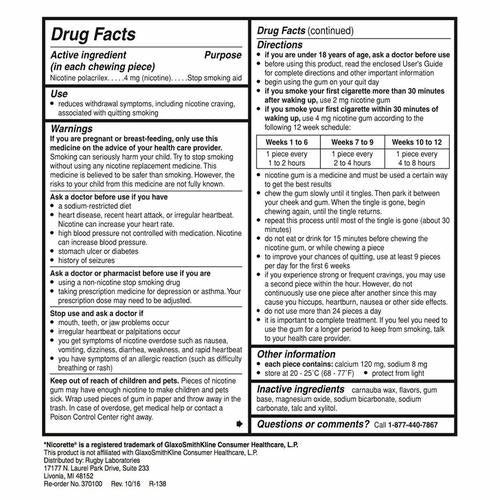Rugby 00536303023 Original Nicotine Gum 4MG Sugar Free (Box of 110 Pieces)