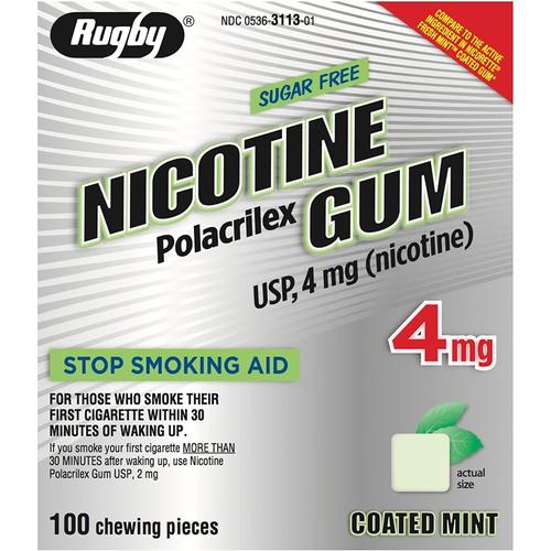 Rugby 00536311301 Sugar Free Nicotine Polacrilex Gum 100 Count 4 MG Mint Flavor Coated