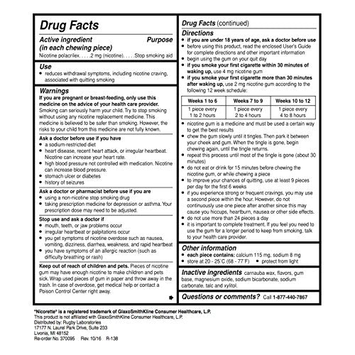 Rugby 536136223 Nicotine Polacrilex Gum 2 mg Mint Flavor 110 Pieces (Each)